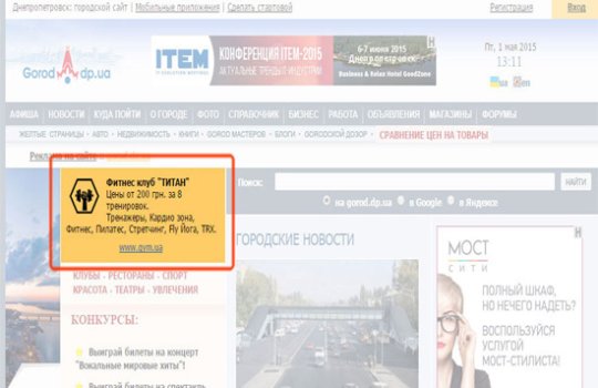 Пример рекламного баннера в интернет-СМИ представлен на фото: